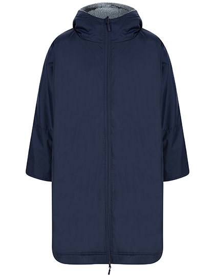 Außen: 100% Nylon 130 g/m², Innen: 100% Polyester-Sherpa-Fleece 280 g/m² | Wasserabweisendes Gewebe bis zu 4.000 mm | Hellgraues Sherpa-Fleece-Futter | Große Gestaltungsfläche | Mit Kapuze | Langärmeliges Design mit verstellbarem Klettverschluss am Armabschluss | Einheitsgröße – 104 cm Länge, 82 cm halbe Brust | Zwei, mit Mikrofleece gefütterte, Taschen vorne | Innentasche mit Reißverschluss | Aufgesetzte Tasche innen | Zwei-Wege-Reißverschluss für Bewegungsfreiheit mit Mikrofleece-Vorderseite | Ohne Logo für einfaches Umlabeln | Veredelungszugang mit verstecktem Reißverschluss