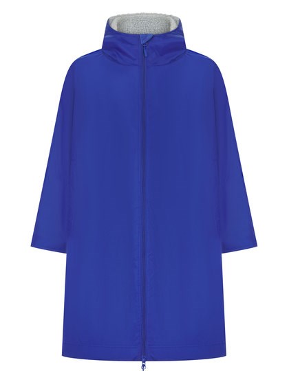 Außen: 100% Nylon 130 g/m², Innen: 100% Polyester-Sherpa-Fleece 280 g/m² | Wasserabweisendes Gewebe bis zu 4.000 mm | Hellgraues Sherpa-Fleece-Futter | Große Gestaltungsfläche | Mit Kapuze | Langärmeliges Design mit verstellbarem Klettverschluss am Armabschluss | Einheitsgröße – 104 cm Länge, 82 cm halbe Brust | Zwei, mit Mikrofleece gefütterte, Taschen vorne | Innentasche mit Reißverschluss | Aufgesetzte Tasche innen | Zwei-Wege-Reißverschluss für Bewegungsfreiheit mit Mikrofleece-Vorderseite | Ohne Logo für einfaches Umlabeln | Veredelungszugang mit verstecktem Reißverschluss