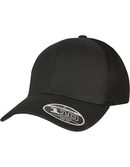 Ripstop-Material | Zwei Frontpaneele und ein gebogenes Visier mit Ziernähten | Rückseite aus transparentem Mesh | Schnappverschluss am Rücken