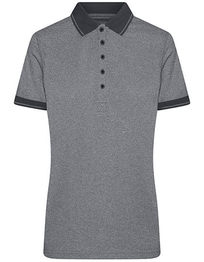Melange-Polo mit modischen Details | Feiner Single Jersey | Lässige Schnittform | Gestrickter Polokragen und Armbündchen mit Kontraststreifen | Leicht taillliert | 5 Knöpfe