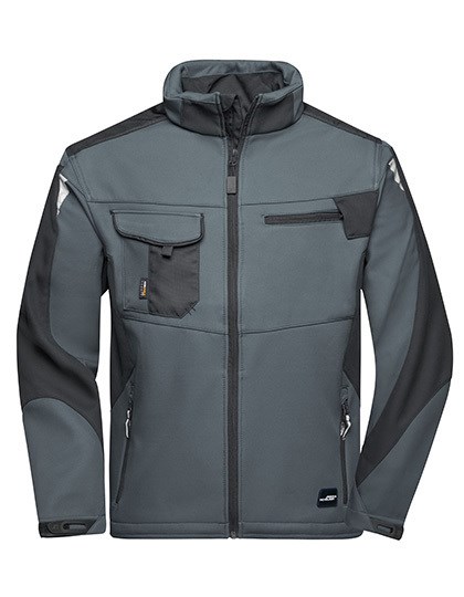 Robustes, strapazierfähiges Softshell-Material | Wind- und wasserabweisend (2.000 mm Wassersäule) | Atmungsaktiv und wasserdampfdurchlässig (2.000 g/m²/24h) | Stehkragen | Schulterbereich mit CORDURA® verstärkt | Durchgehend unterlegter Reißverschluss mit Windschutzblende | Seitentaschen und Brusttasche mit Reißverschluss | Brusttasche mit Klappe, Innentaschen | Reflektions-Elemente (ohne Schutzfunktion/keine PSA) am Arm und Rückenteil
