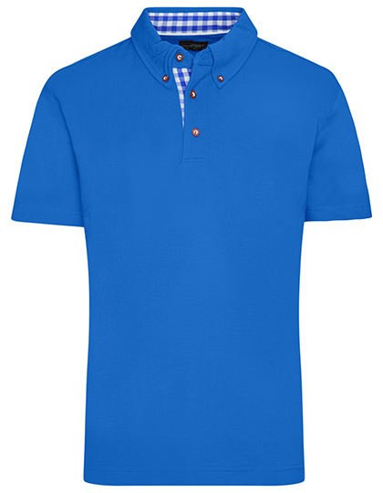 Klassisches Polo im Trachtenlook | Feine Piqué-Qualität | Gekämmte, ringgesponnene Baumwolle | Karobesatz in Kragensteg, Knopfleiste innen und Seitenschlitzen | Trachtenknöpfe aus Horn-Imitat | Halbmond Ton in Ton | Konfektionierter Button-Down-Kragen | Drei Knöpfe