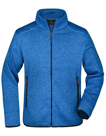 Modische Strickfleece-Jacke mit Stehkragen | Weiches, wärmendes, pflegeleichtes Material in Melange-Optik | Außenseite Strickoptik, Innenseite flauschig weich angeraut | Figurbetonende Teilungsnähte | Seitliche Taschen mit Reißverschluss | Kontrastfarbige Einfassung an Saum und Ärmel | Trendige Ärmeltasche mit Reißverschluss