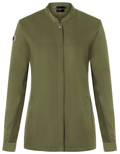 Vorderseite: Köpergewebe, 150 g/m² | Rückeneinsatz: Jersey-Piqué, 170 g/m², Atmungsaktiv, feuchtigkeitsregulierend | Polyesteranteil aus recyceltem Plastik | Leicht tailliert geschnitten | Mit Druckknöpfen zum schnellen Öffnen und Schließen | Ärmelmanschetten mit Druckknöpfen | Vorderteil mit Reißverschlußtaschen und Leistentasche am linken Ärmel | Stylische Applikationen aus Kontrastbändern an den Ärmeln und im Nacken | Grüner Knopf zertifiziert, www.g-k.eu/karlowsky