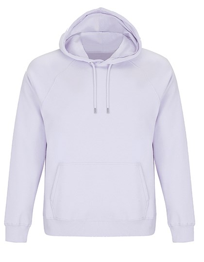 Fleece 280 | 80% Bio-Baumwolle / 20% recycelter Polyester | 3-Faden-Garn | Innen gebürstet | Obermaterial: 100% Baumwolle, Ripp-Stoff: 97% Bio-Baumwolle / 3% Elasthan | Bio-Hoodie | Seitennaht | Überkreuzter Kragen | Kängurutasche | Raglan-Ärmel | Halbmond im Nackenbereich | Jersey-Nackenband | 2 x 2 gerippte Ärmelabschlüsse und Saum | Silberne Ösen und Stopper | Runder Ton-in-Ton-Kordelzug | Kein Label