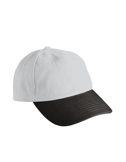 Stark gebürstete Baumwolle | Metallschnalle in Mattsilber mit Druckknopf und Stoff-Öse | Sechs gestickte Luftlöcher | Acht Ziernähte auf dem Schirm | Stirnanliegend | Gefüttertes Satin-Schweißband | Farbe Schwarz auch für 60-cm-Kopfgröße erhältlich
