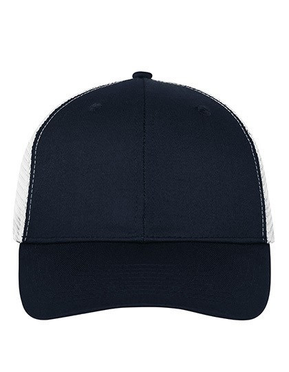 Trendige 6-Panel-Mesh-Mütze aus Polycotton | 8 Ziernähte auf dem Schild | 2 gestickte Luftlöcher an den vorderen Panels | Gefüttertes Schweißband | Größenregulierung durch "click & snap" Verschluss | Frontpanel: laminiert