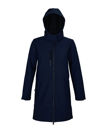 Softshell 270, recycelter Polyester / Elasthan, Fleecefutter: 100% Polyester | Wasserdicht (5.000 mm) | 3-lagig | Öffnung mit wasserdichtem Doppel-Reißverschluss | Zwei Seitentaschen und eine Brusttasche mit wasserdichten Reißverschlüssen | Abnehmbare Kapuze mit Reißverschluss, Schirm und Kordelzug | Verstellbare Bündchen mit Druckknöpfen | Weitenregulierbare Taille | Kein Label