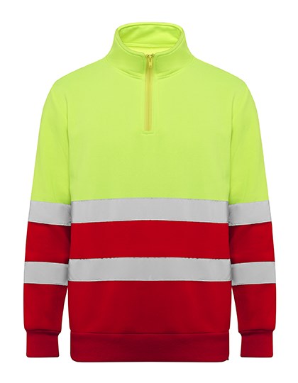 Hi-Viz Sweatshirt-Warnschutzpullover mit halbem Reißverschluss, hohem Kragen, Kinnschutz und... mehr