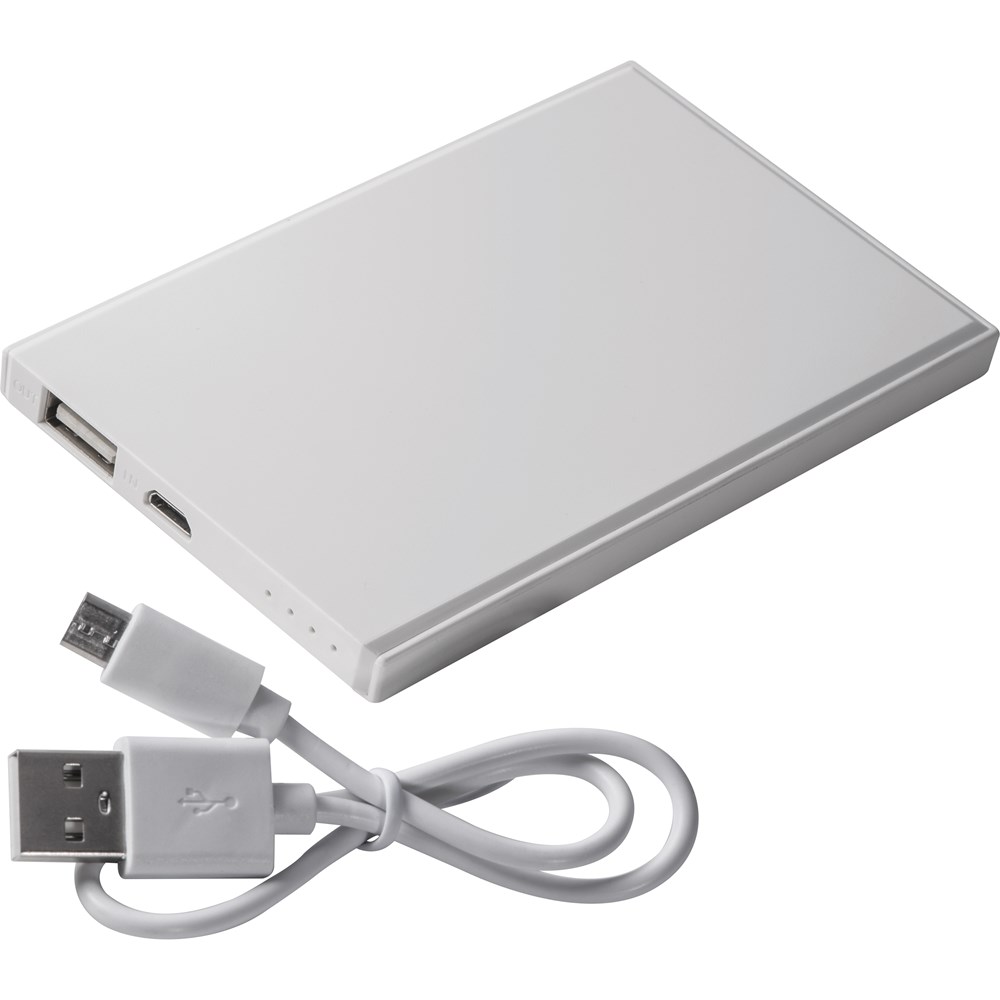 Powerbank mit einer Kapazität von 2.200 mAH und Ladestandanzeige, inkl. USB-Ladekabel. So kann Ihr Smartphone auch unterwegs aufgeladen werden. Ihre Werbung drucken wir im UV-Druck (CMYK) direkt auf die Powerbank.