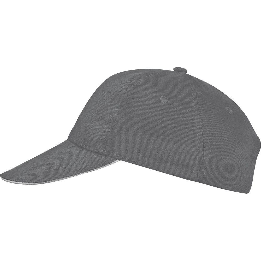Trendige 6 Panel Sandwich-Baseballcap aus Heavy-Brushed-Cotton mit matt silbernem Metallschnellverschluss. Ihre Werbung sticken wir auf das Stirnfeld.