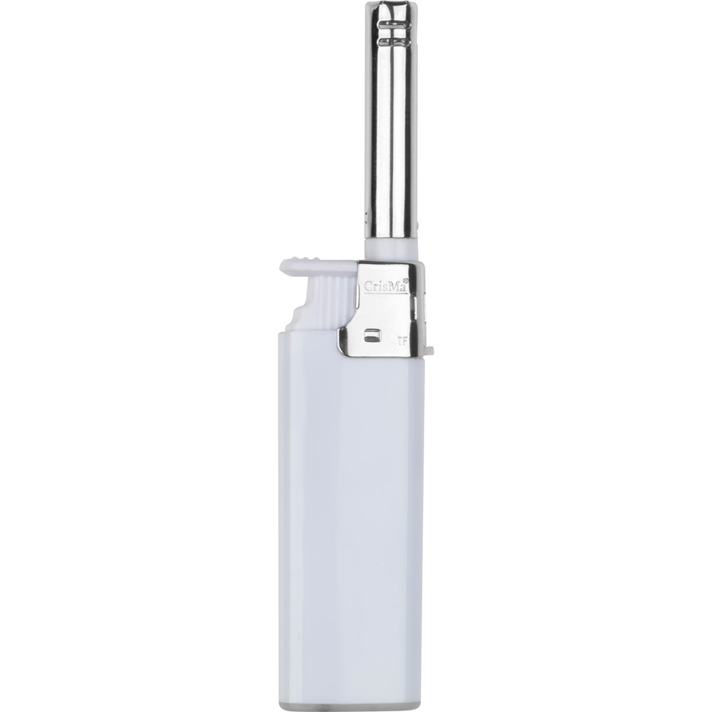 Elektronik Feuerzeug mit verlängertem Aufsatz für schwer erreichbare Dochte, nachfüllbar. Die Flammengröße lässt sich stufenlos verstellen. Ihr Werbeaufdruck erfolgt auf einer Seite.