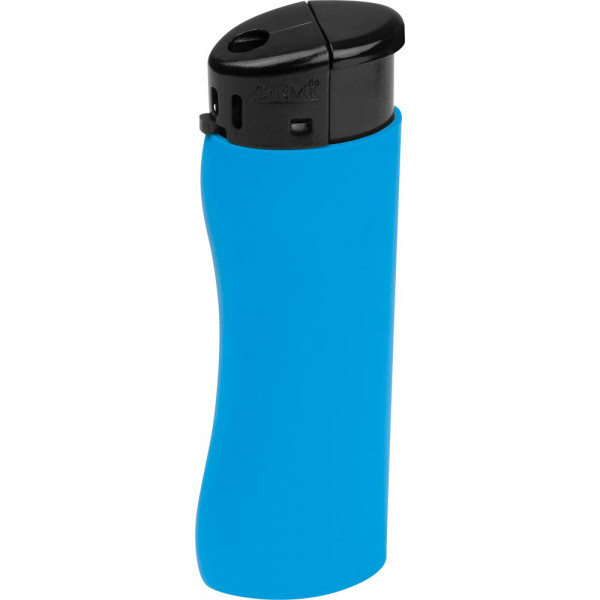 Ergonomisch geformtes Elektronikfeuerzeug mit gummierter Oberfläche, nachfüllbar. Die Flamme lässt sich stufenlos verstellen. Der Werbeaufdruck wird im Digitaldruck (mehrfarbig) für Rechtshänder lesbar angebracht.