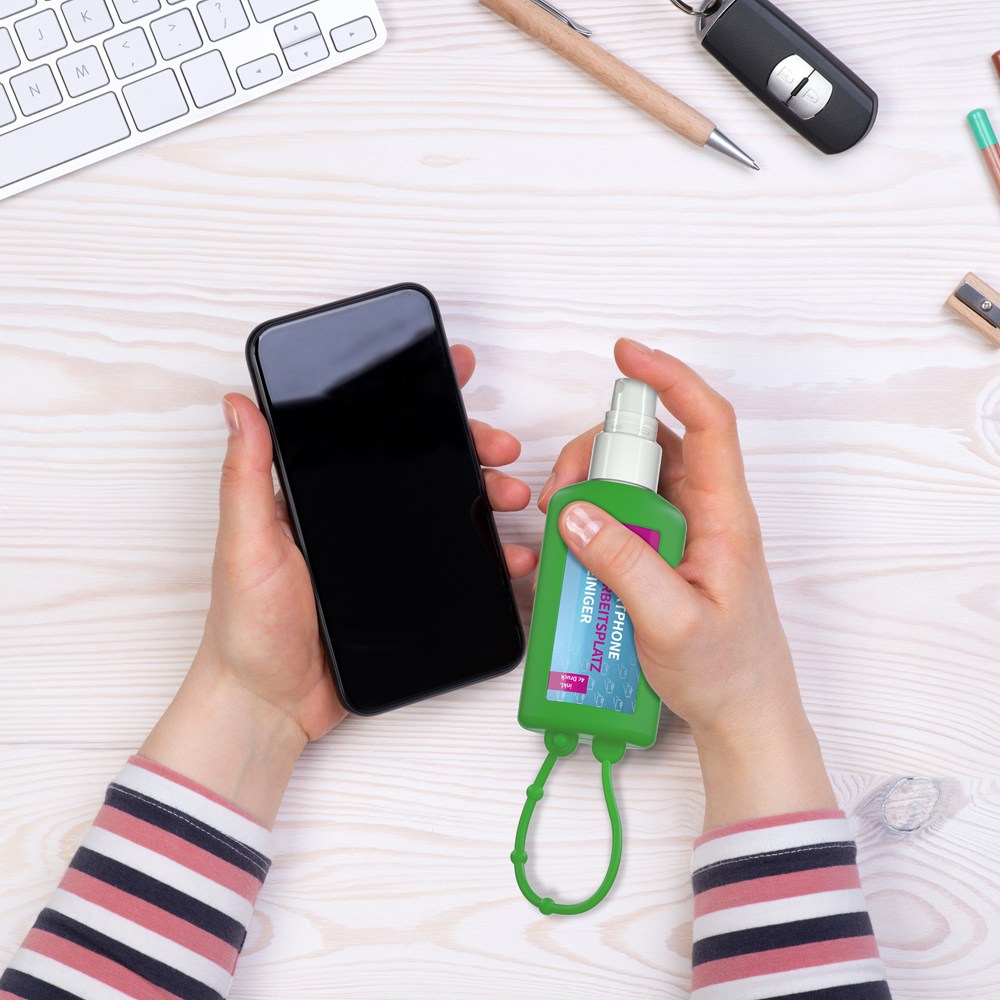 Smartphone & Arbeitsplatz-Reiniger, 50 ml Bumper grün, Body Label (R-PET)