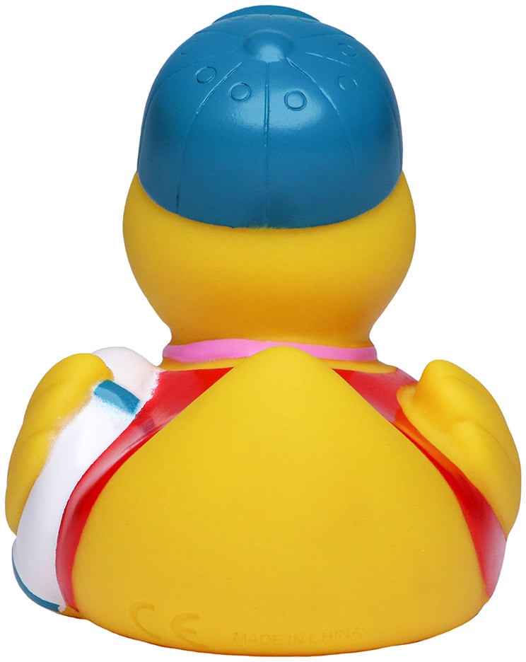 Ist Ihre Badewanne sicher? Ohne diese Bademeisterente sicher nicht sicher genug! Gekleidet mit einem roten Schwimmanzug, einer blauen Mütze und der bademeistertypischen Trillerpfeife um den Hals, sorgt diese Ente dafür, dass sich alle an die Regeln halten: Auf keinen Fall wird vom Beckenrand in ihre Wanne gesprungen und dank des blau-weißen Schwimmrings, ist dieser Bademeister auch in der Lage, im Notfall jemanden zu retten.