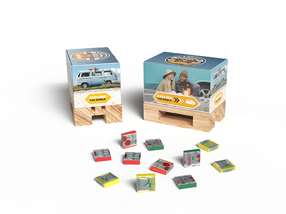 Fruchtige Kaubonbons auf einer originellen Geschenk Mini-Palette verpackt – ein echter Hingucker für die Transport- und Speditionsbranche. Der intensive Fruchtgeschmack und die weiche Konsistenz wecken Kindheitserinnerungen und sorgen für Genussmomente. Ideal als kreatives Werbegeschenk, das garantiert im Gedächtnis bleibt! Kartonage aus FSC-zertifiziertem Papier und rundum veredelbar.