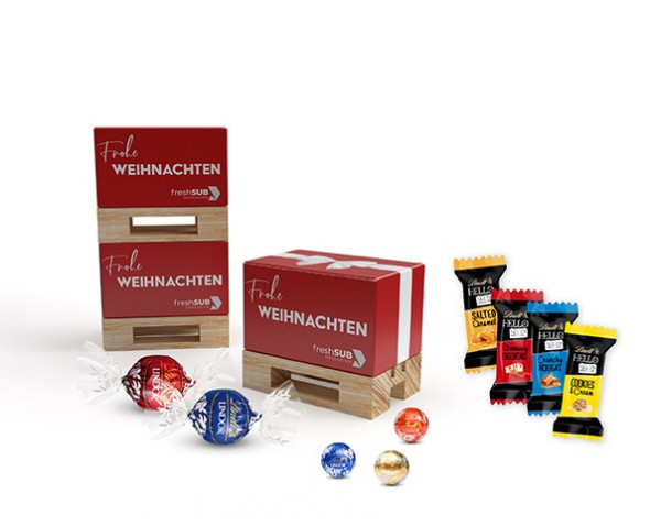Diese Geschenkbox auf einer Mini-Palette lässt besonders die Herzen aus der Transport-Branche höher schlagen. Die Box kann vollflächig veredelt und mit zahlreichen Füllmöglichkeiten ausgestattet werden. Second Life: Nach Gebrauch kann die Box mit kleinen Büroartikeln wie Heftklammern befüllt und weitergenutzt werden.