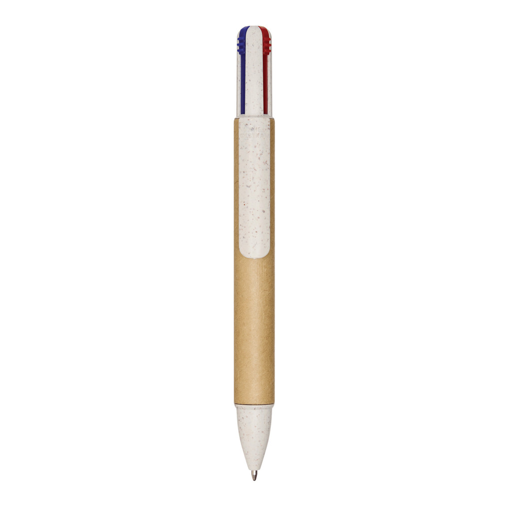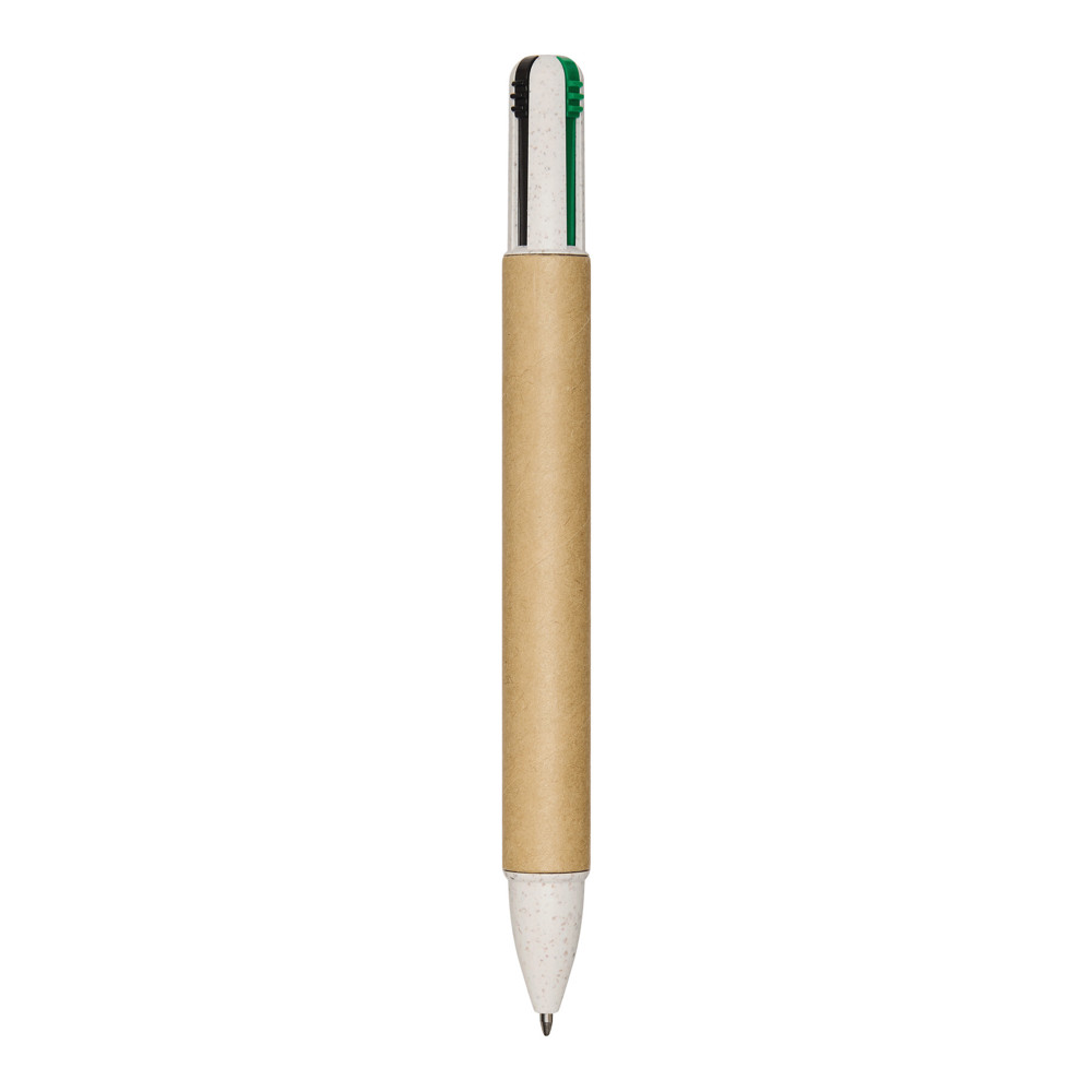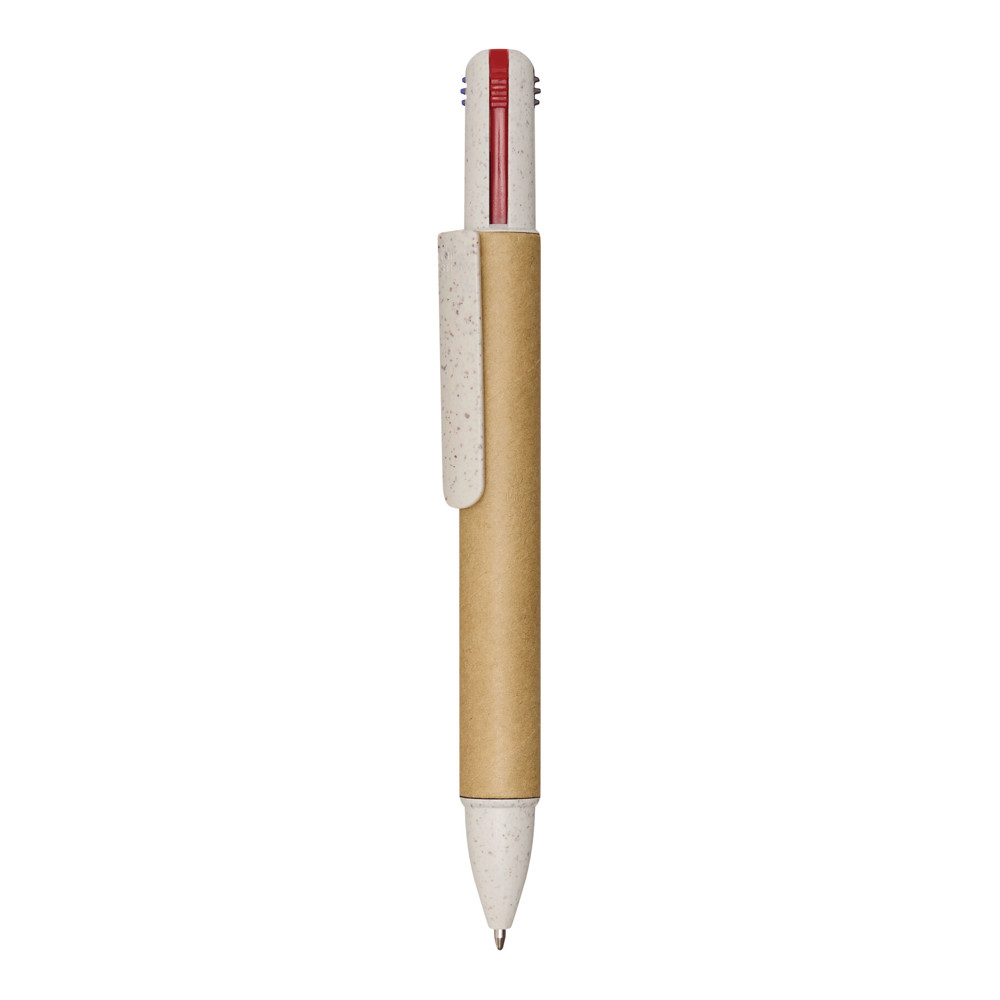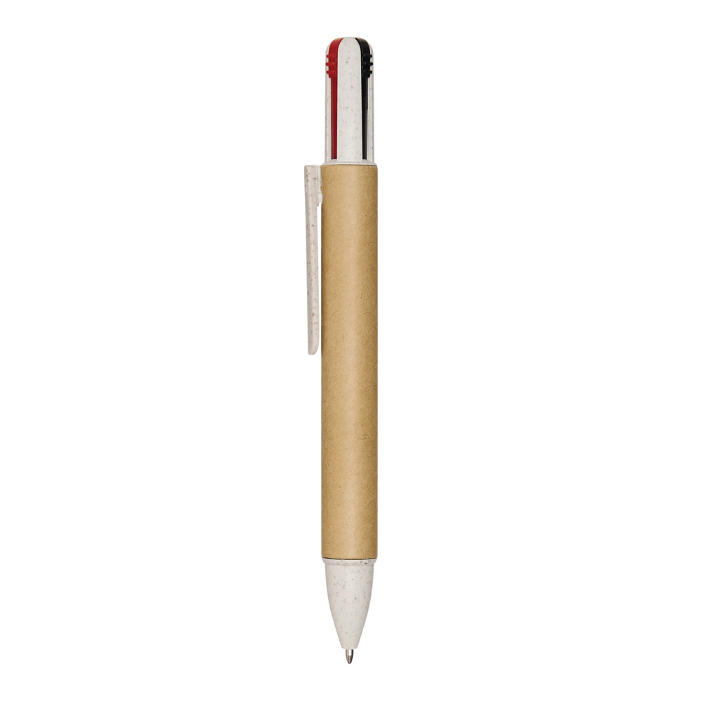 Kugelschreiber MUCO, vierfarbig: aus Weizenstroh/ABS, Schaft ummantelt mit recyceltem Karton, Druckmechanismus, Kugelschreiberminen in schwarz-, rot-, blau- und grünschreibend