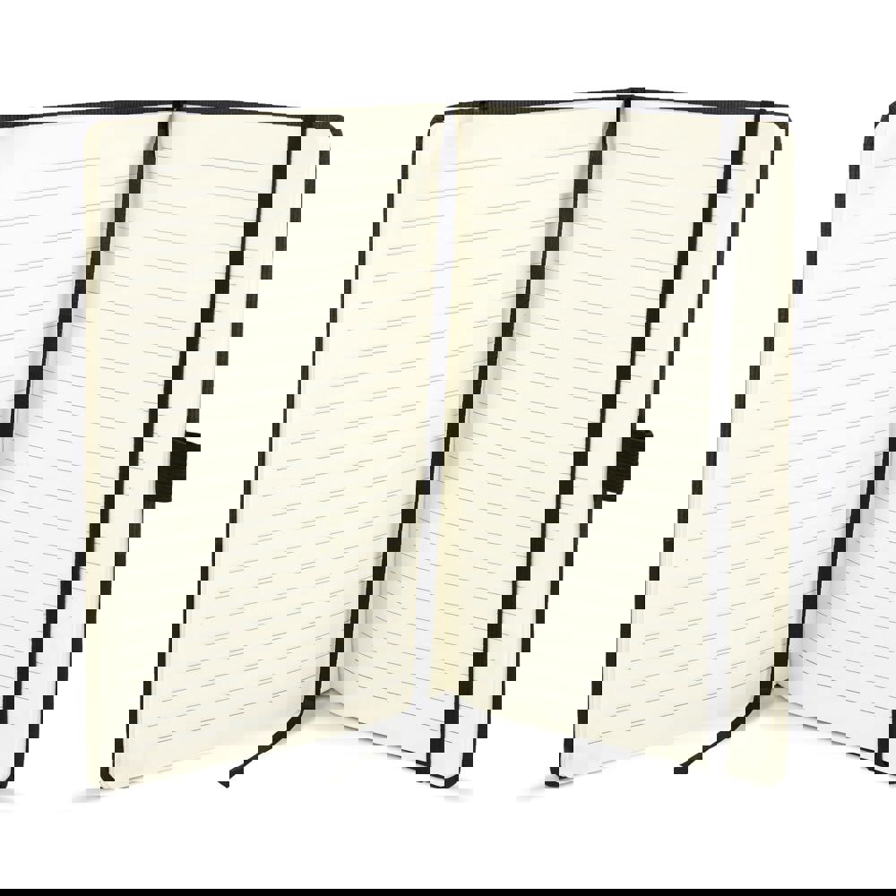 A5-Notizbuch aus Thermo-PU-Kunstleder mit modernem, hochwertigem Look. Ausgestattet mit einem elastischen Verschlussband, Lesebändchen und Stiftschlaufe. Es hat 80 linierte, cremefarbene Blätter aus FSC-zertifiziertem Papier.