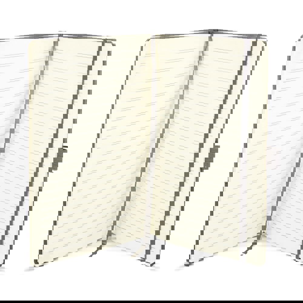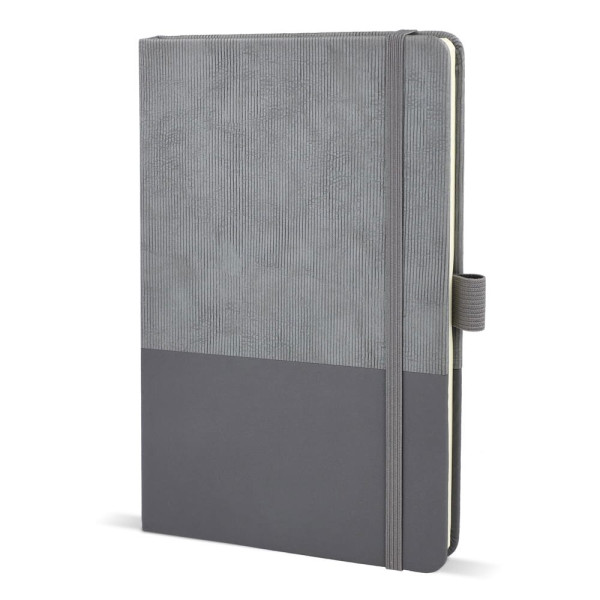 A5-Notizbuch aus Thermo-PU-Kunstleder mit modernem, hochwertigem Look. Ausgestattet mit einem elastischen Verschlussband, Lesebändchen und Stiftschlaufe. Es hat 80 linierte, cremefarbene Blätter aus FSC-zertifiziertem Papier.
