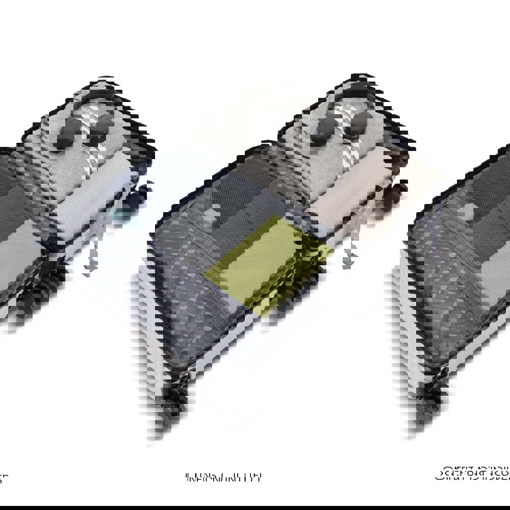 Der Rulla Kabinenkoffer von InSideOut bietet Komfort beim Reisen: vier Lenkrollen, TSA-Zahlenschloss, Handyhalterung im Griff, integrierter Getränkehalter hinten und zwei seitliche Haken für Tasche oder Nackenkissen. Im vorderen Fach eine gepolsterte Laptoptasche für Geräte bis 15,6 Zoll.