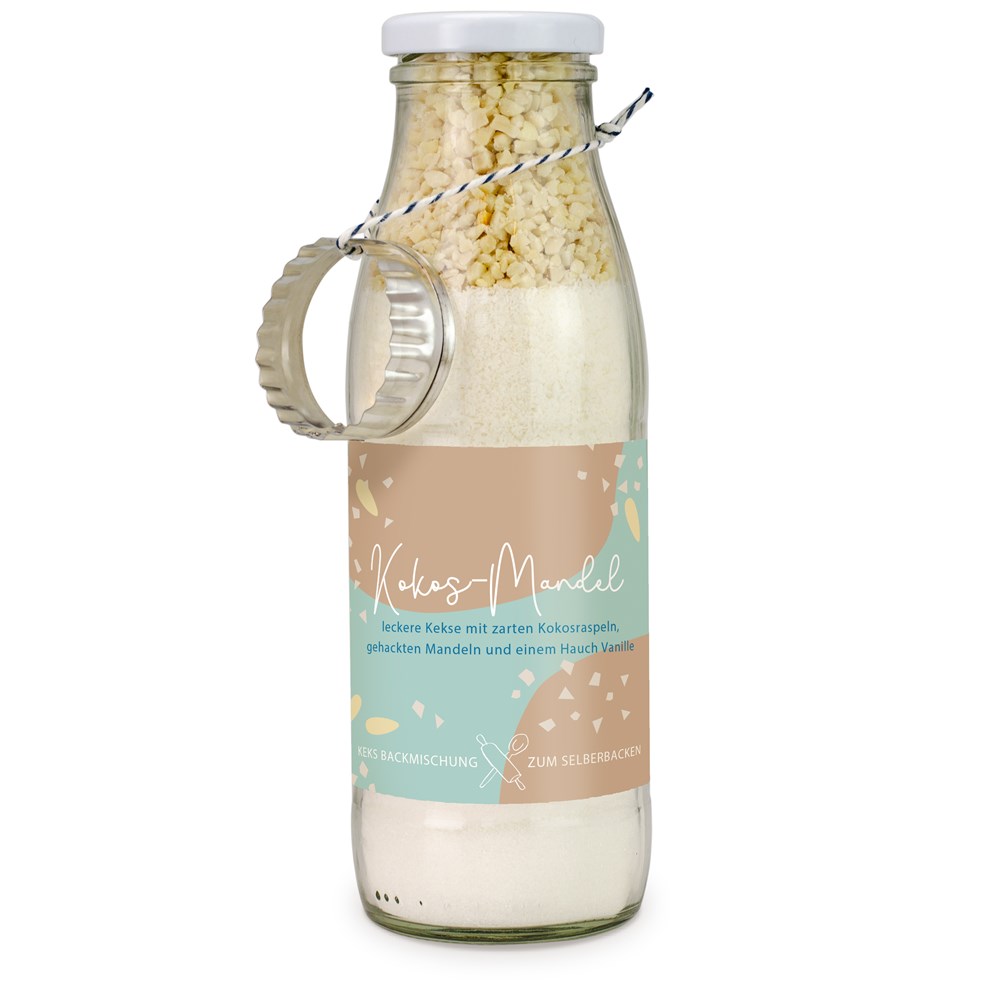 Diese Backmischung geht auf den Keks. Mit leckeren Kokos-Mandel Keksen in der schicken Flasche liegen Sie immer richtig.