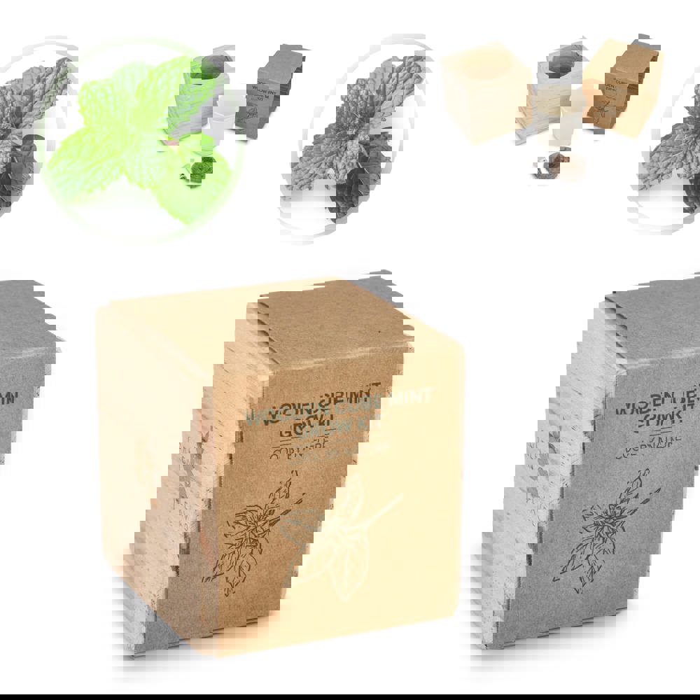 Von Natur aus cool! Mit diesem Pflanzset mit Kokosfasererde können Sie zu Hause erfrischende Minze anbauen. Ein natürliches Symbol für Klarheit, Erneuerung und frische Ideen, die Wurzeln schlagen. Ein Geschenk, das Marken auf originelle Weise im Gedächtnis bleiben lässt.