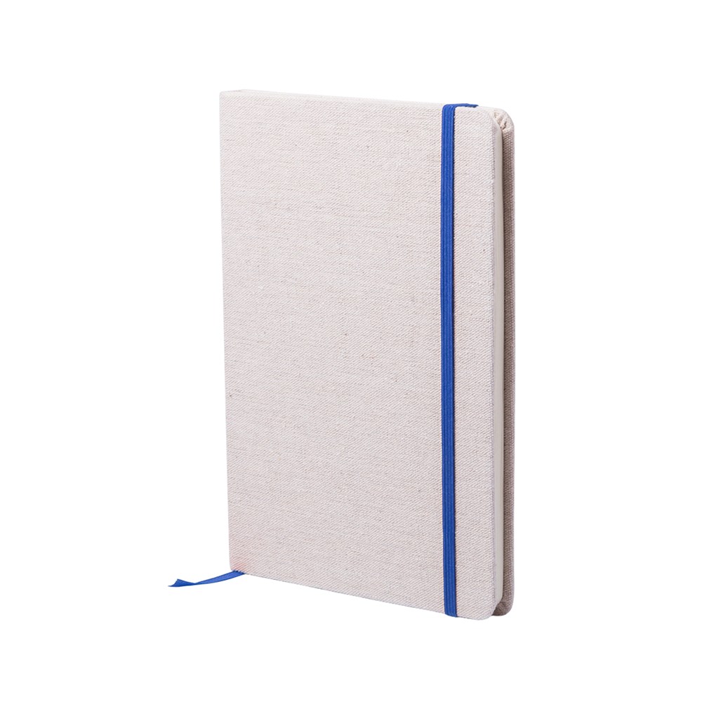 Notizbuch aus natürlichen Materialien. Cover aus weicher, natürlicher Baumwolle in Naturfarbe. Mit Gummibandverschluss und Lesezeichenband in passenden, auffälligen Farben. Enthält 80 Blätter.