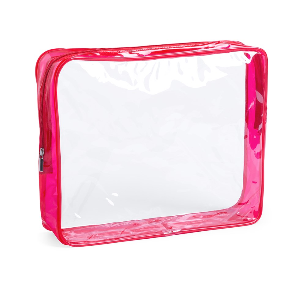 Mehrzwecktasche aus resistentem halbtransparentem und transparentem PVC-Material. Erhältlich in verschiedenen lebendigen Farben mit farblich passendem Reißverschluss.