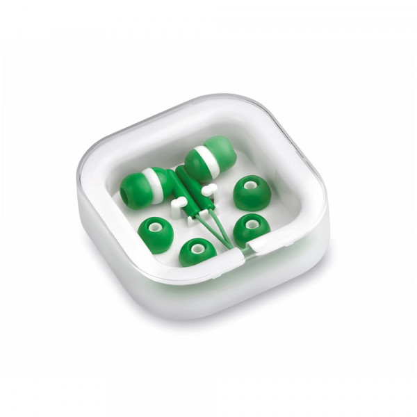 Praktische und bequeme In-Ear-Kopfhörer mit lässigem zweifarbigem Design, 3,5 mm-Klinkenstecker und farblich abgestimmtem Kabel. Erhältlich in einer breiten Farbpalette. Präsentiert in einem eleganten Design-Etui und mit Ersatz-Ohrpolstern.