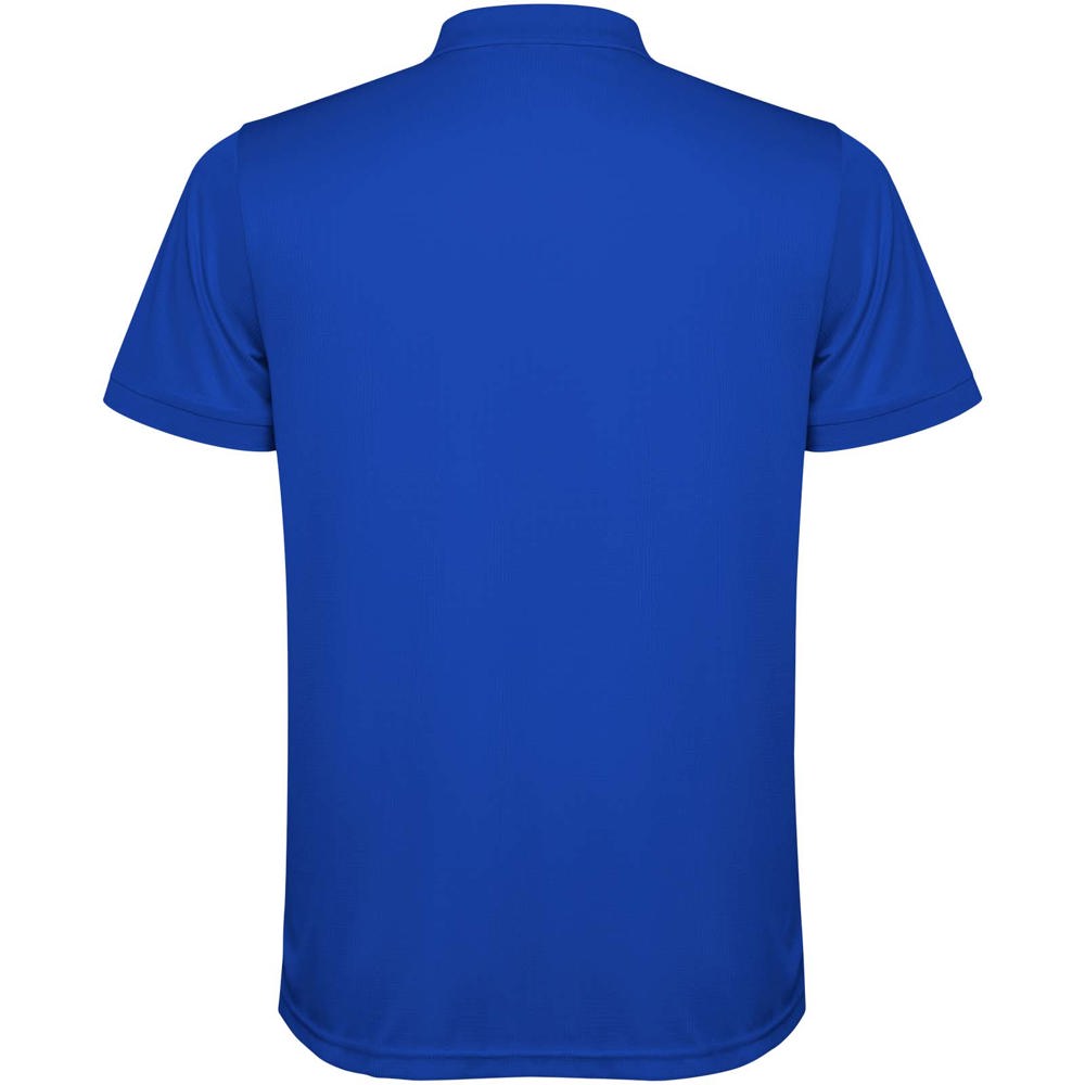 Kurzärmeliges Poloshirt für Herren. Verstärkte und verdeckte Nähte am Innenkragen. 1×1-Rippstrick an Bündchen und Kragen. Seitennähte. Knopfleiste mit 3 Knöpfen und Seitenschlitze.