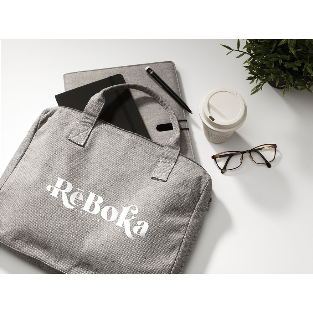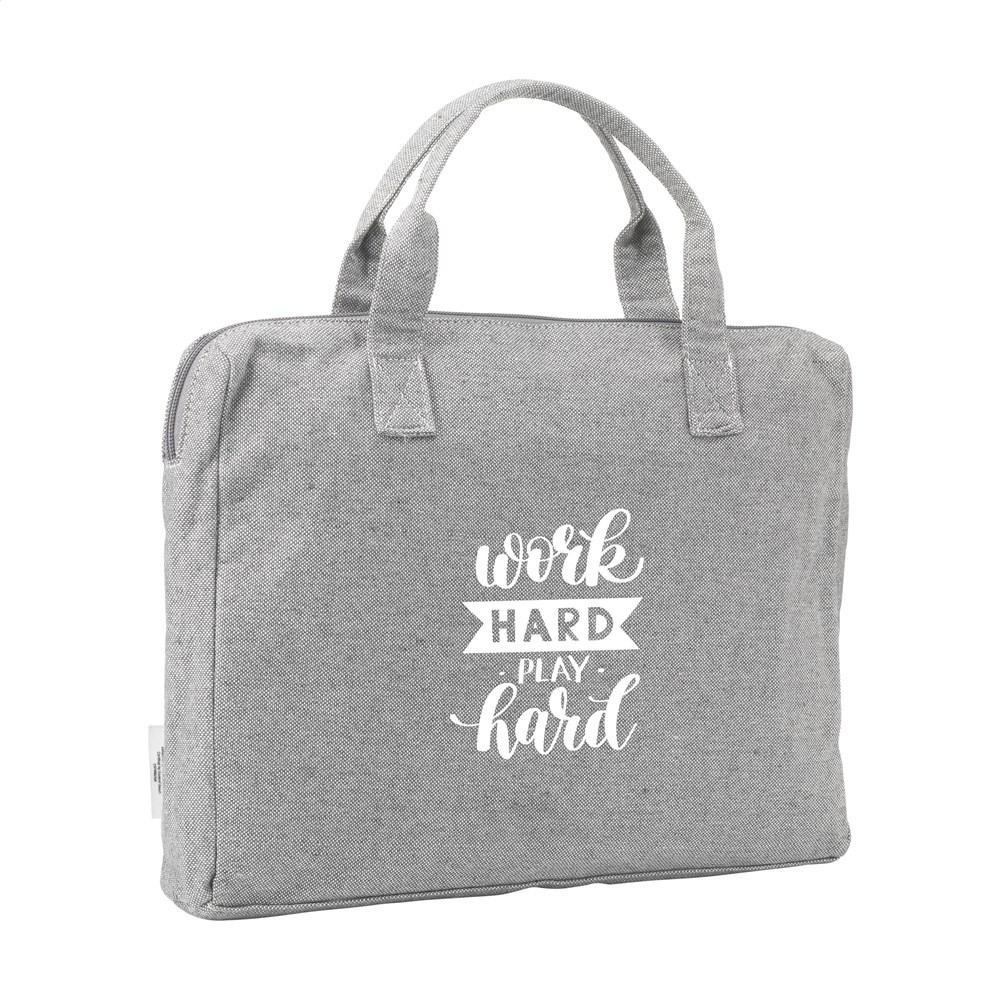 Geräumige Laptoptasche der niederländischen Marke Wolkat. Hergestellt aus alten, ausrangierten Kleidungsstücken, die niederländische Verbraucher abgegeben haben. Bei Wolkat wird der gesamte Prozess unter einem Dach gesteuert – vom Sammeln und Sortieren über das Recyceln bis hin zum Spinnen und Weben. Während des gesamten Textil-Recyclingprozesses werden weder Wasser noch Farbstoffe oder Chemikalien verwendet. Wolkat zerkleinert und zerfasert die Textilien zu reinen Fasern, die dann an die eigene Spinnerei übergeben werden. In der Spinnerei in Marokko werden Garne unterschiedlicher Stärke und Qualität gesponnen. Daraus werden Produkte hergestellt, die zu 52% aus recycelten Textilien von Verbrauchern und zu 48% aus recyceltem PET bestehen, zum Beispiel diese Laptoptasche. Geeignet für den Transport eines Laptops bis zu 15,6 Zoll. Ausgestattet mit einem Reißverschluss, zwei verstärkten Griffen und einem verstärkten Boden. Sorgfältig verarbeitet mit einem Innenfutter und einem zusätzlichen Reißverschlussfach auf der Innenseite.