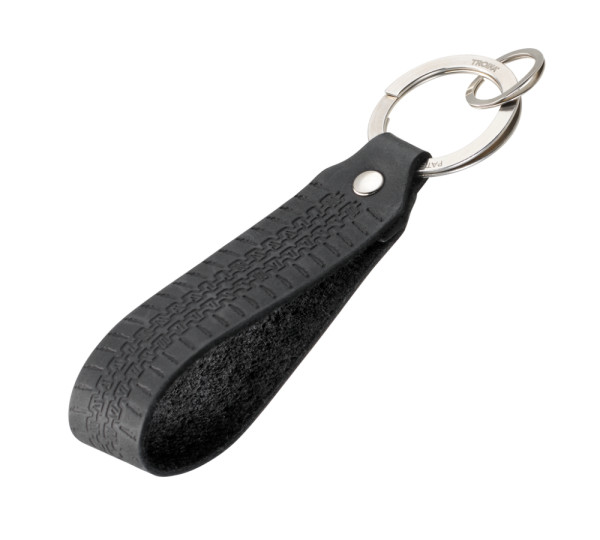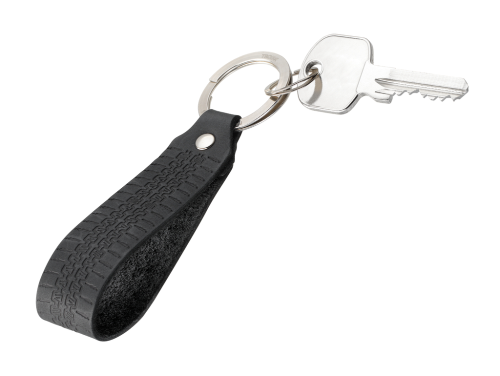Schlüsselanhänger Lederschlaufe, Motiv: VW Golf Reifenprofil 1974, schnelles & einfaches Anbringen der Schlüssel dank patentiertem Öffnungsmechanismus (TROIKA NAIL GUARD), Leder (Made in Germany), schwarz