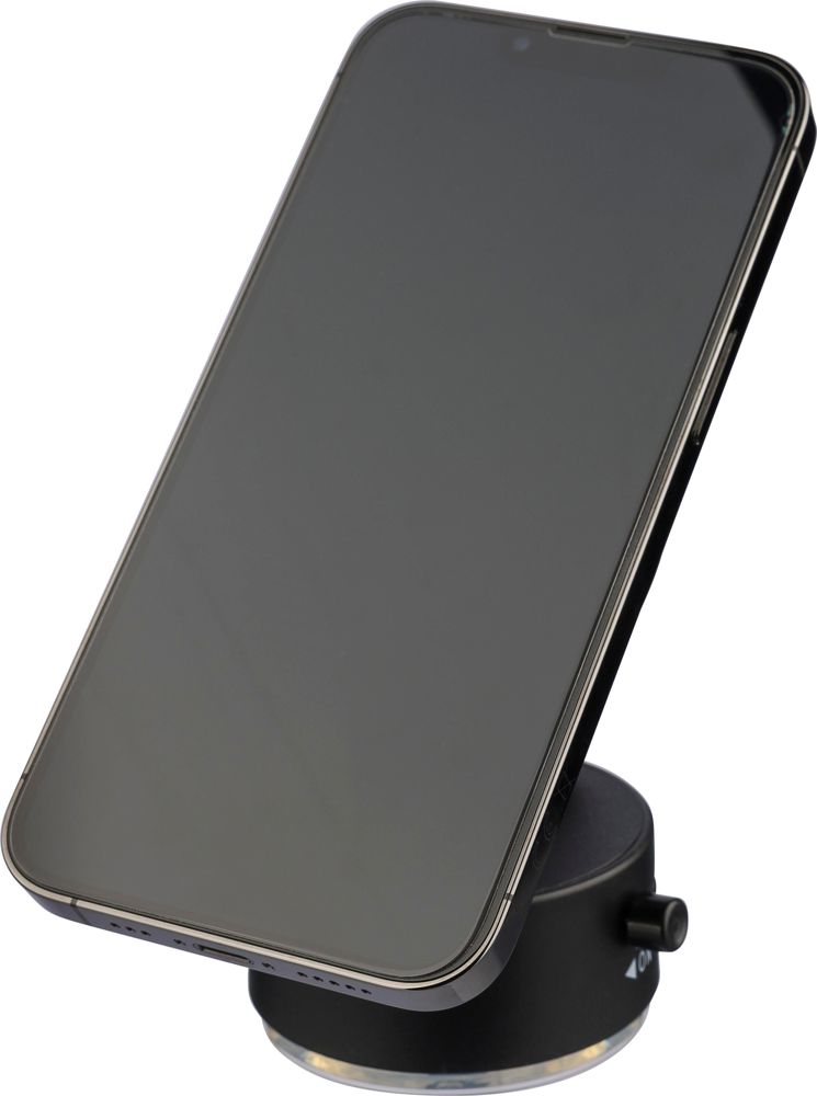 Dieser magnetische MagSafe-Telefonständer aus recyceltem ABS verfügt über einen Saugnapf und eine Verriegelungsfunktion, die eine sichere Befestigung gewährleisten. Er lässt sich kompakt zusammenfalten. Ein Metallring ist inklusive, sodass er mit allen Telefontypen kompatibel ist. Zwischen „Ein“ und „Aus“ befindet sich ein Recycling-Logo. Er ist ideal für die Verwendung auf glatten Oberflächen, z. B. im Auto. Er ist einzeln in einem braunen Karton verpackt.