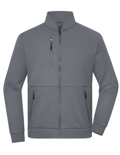 Weiches, elastisches Material mit glatter Außenseite und Fleece- Innenseite | Das Material hat einen Anteil von 21% Sorona | Angesetze, elastische Arm-und Leibbündchen | 2 seitliche Reißverschlusstaschen | 1 Reißverschluss-Brusttasche | Reißverschlüsse: YKK