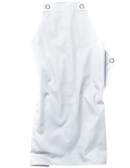 Latzschürze mit vier Ösen | Bänder mit Druckknöpfen auswechselbar (Bänder nicht im Lieferumfang enthalten. Das Bänderset finden Sie unter Artikel CGW42141) | Im Rücken gekreuzte Bänder zur Entlastung des Nackens und stufenlosen Verstellung | Hochveredeltes Mischgewebe | Knitterarm | Strapazierfähig | Bis 95°C waschbar | Industriewäsche- und finishertauglich