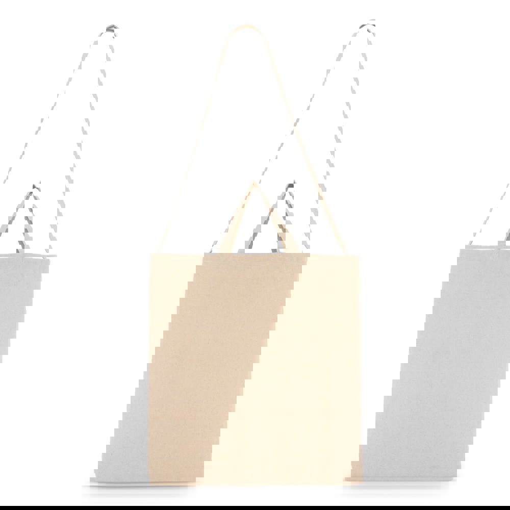 Praktische Baumwolltasche aus 220 g/m² mit einem langen Griff zum Tragen über der Schulter oder am Körper und zwei kurzen Griffen zum Tragen in der Hand. Ideal für den täglichen Gebrauch oder für Veranstaltungen. Oeko-Tex® zertifiziert für sichere, geprüfte Materialien.