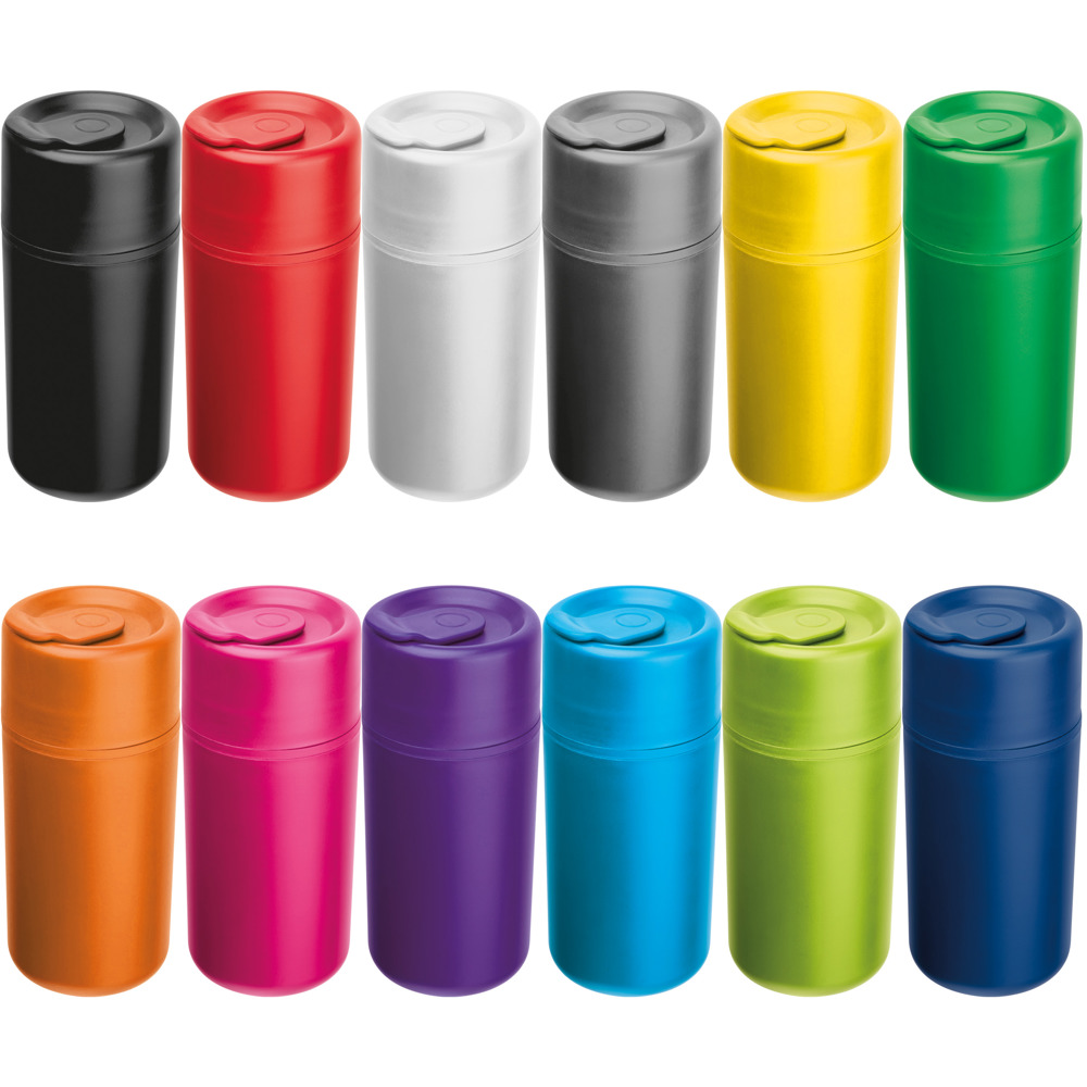 Doppelwandiger Trinkbecherr aus Kunststoff (Polypropylen) mit einem Fassungsvolumen von 500 ml und einer Trinkschiebeleiste. Ihre Werbung drucken wir auf den Becher. Rundumdruck auf Anfrage möglich.