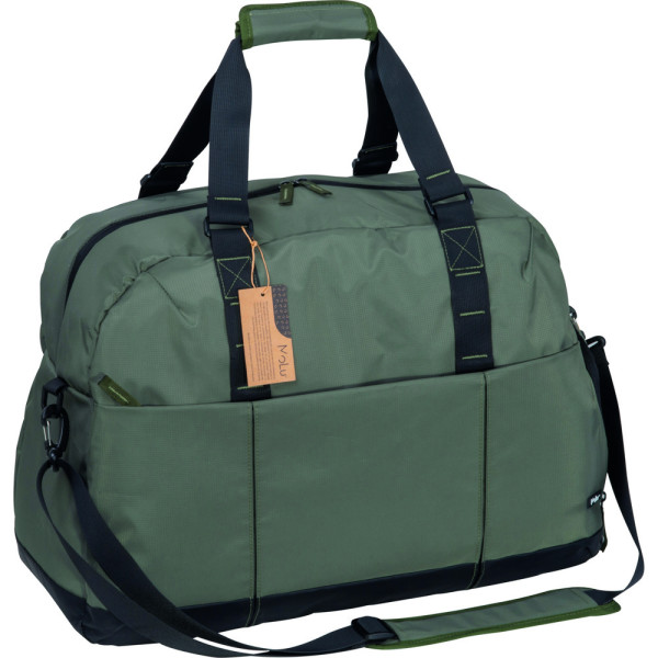 MoLu XXL Sport- & Reisetasche – Olivgrün, stark & nachhaltigPerfekt abgestimmt auf die MoLu Bauchtasche – gleicher Look, gleicher Anspruch.Viel Platz für Sport, Reise & Alltag – mit separatem Schuhfach für extra Komfort.Aus recyceltem PET, robust verarbeitet und funktional durchdacht.Ein echtes Raumwunder mit Stil – für alles, was mit muss. Ihr Logo wird mittig auf der Tasche platziert.